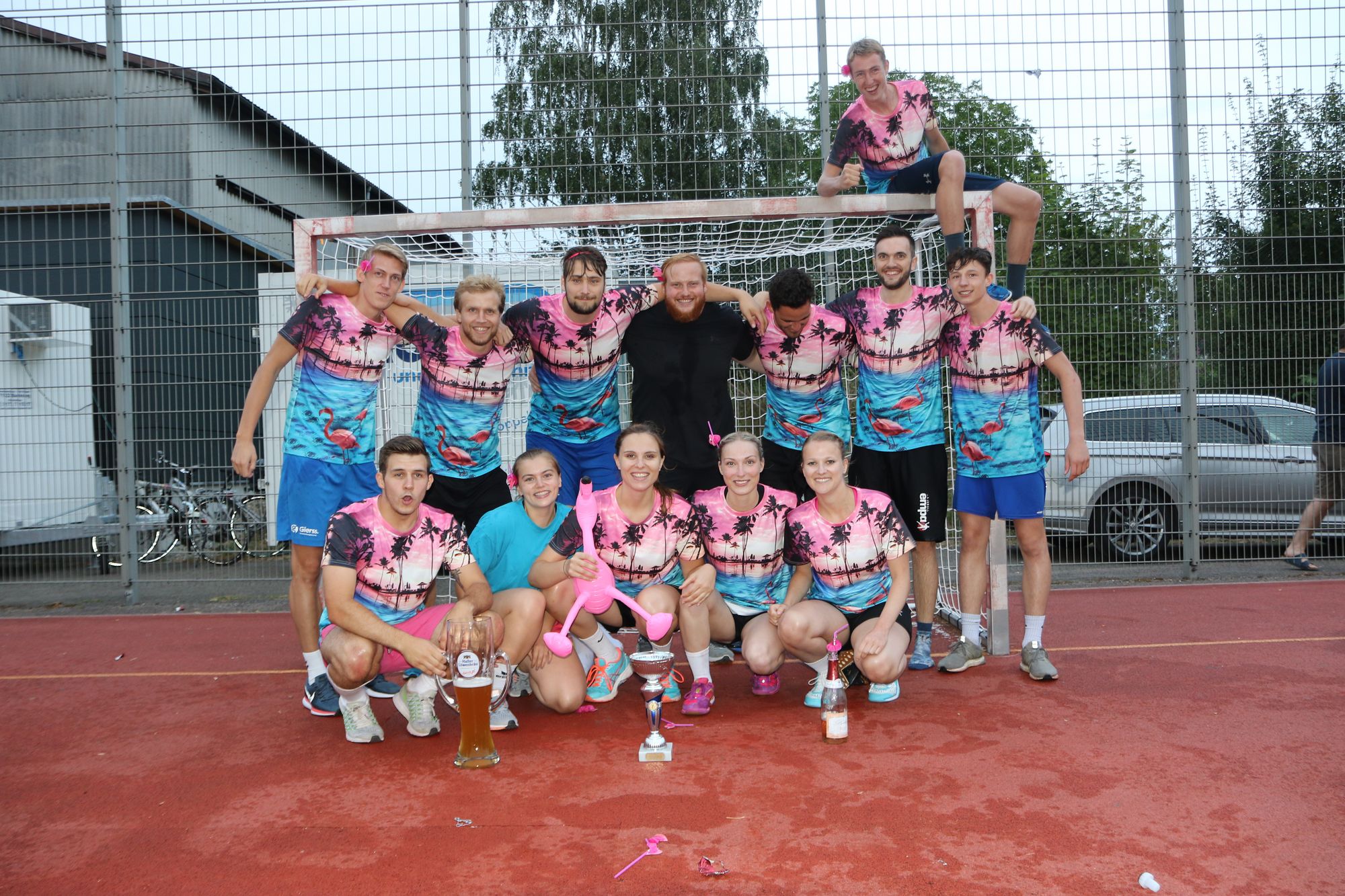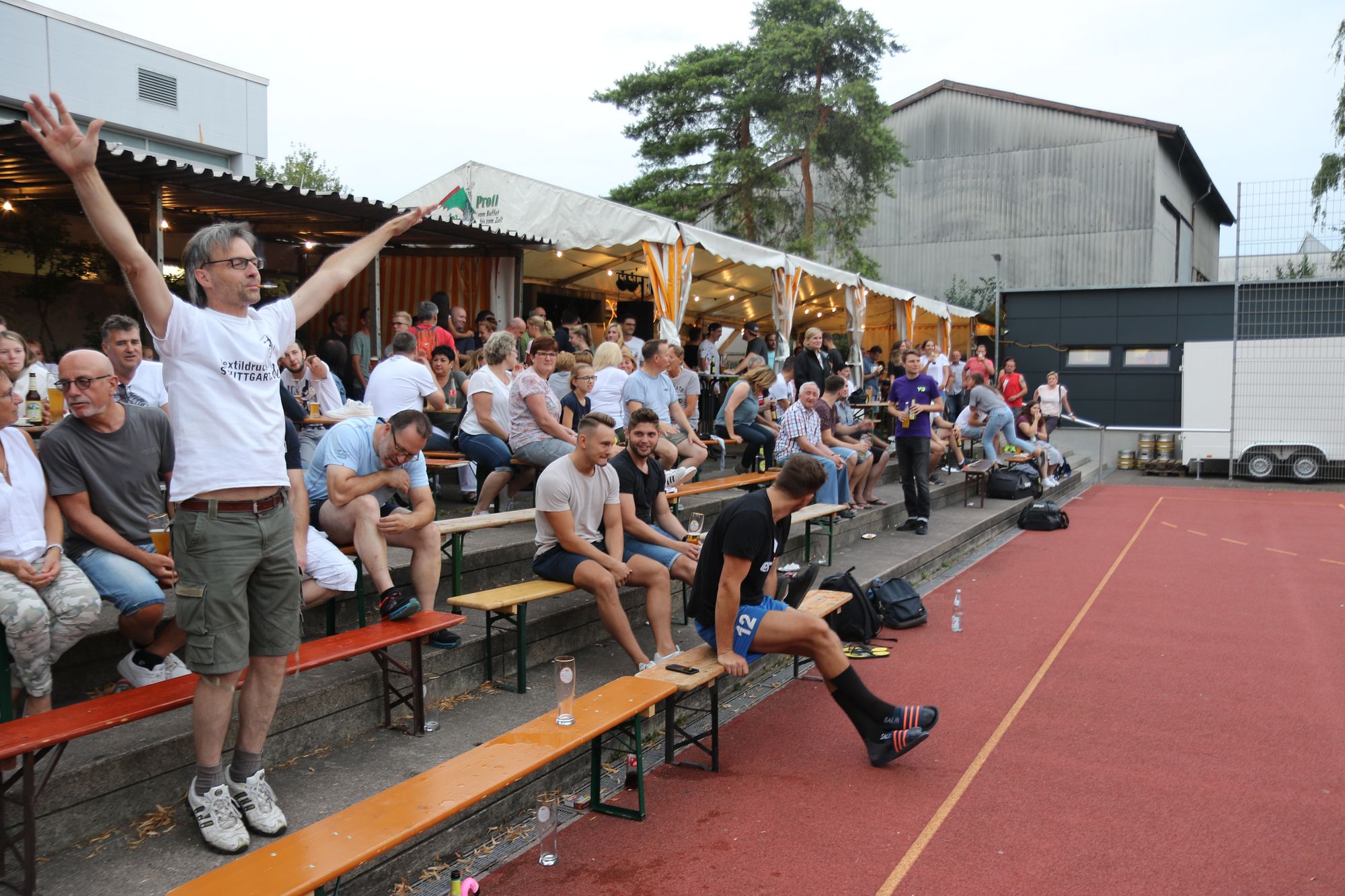 Zum Abschluss des Ortsturniers drängten die Ambitionen den Spaßaspekt zurück. Davor war mehr als eine Woche das „Ortse“, wie es liebevoll genannt wird, das Zentrum von sportlichen Leistungen und Geselligkeit. Feucht-fröhlich wurde es am Freitag aber nicht nur für die Erstplatzierten – für die Neulinge namens Flamongos, die direkt die Profi-Mixed-Klasse gewannen, für Juventus Urin, das mal wieder in der Jubiläumsklasse vorne lag, sowie für Perlweiss Oeffingen, den Gewinner der Mixed Klasse –, sondern für alle. Das Team, da sich Villa Samenbank nennt, hatte einen kleinen Swimming-Pool aufgebaut, in dem im Laufe des Abends fast jeder Abkühlung fand. „Einige, so heißt es gerüchtehalber, gehen ansonsten auch mal gemeinsam unter die Dusche“, sagte Jonas Conrady, der den traditionellen Mix aus ernsthaftem Wettstreit und fröhlichem Wetteifern mit seinem Bruder Rafael, Sebastian Bürkle und Fabian Engelhart organisiert hat.