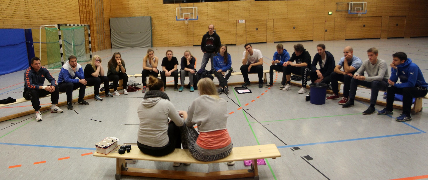 Auf dem Programm standen ebenfalls kleinere Übungen in der Gruppe, sowie zu Beginn ein kleines Kennenlernen, um allen die Möglichkeit zu geben, bislang nicht wahrgenommene Trainerkollegen bewusst wahrzunehmen. So sollte es unserem Team in Zukunft möglich sein, sich besser über Problemstellungen oder Ideen auszutauschen und den Zusammenhalt innerhalb des HSC weiter zu stärken.